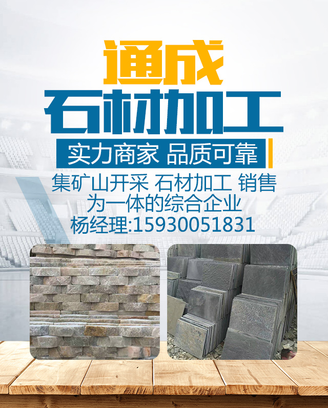内丘县通成石材加工厂位于素称“五朝古都、十朝雄郡、国中之国”的河北省邢台市,20余万平方米,工厂拥有先进的生产设备、专业的技术人才、严格的质量控制体系,拥有制作优良的产品与服务。我厂主要以天然石英岩、砂岩为原料精加工成文化石、蘑菇石、火烧板、网贴、马赛克、乱型石等。产品涵盖了红、黄、蓝、绿、紫、棕、黑、白、灰、浅粉等十余种颜色六大系列三十多个品种,主要有:粉砂岩、虎皮黄、粉石英、绿石英、白石英、黑石英、黄石英;白砂岩、紫砂岩、棕砂岩、黄砂岩;高粱红、玫瑰红、牡丹红、鸡血红、桃红玉、粉红玉、晶白玉;芝麻黄、芝麻白、黄木纹、黑白花、银棕板、泥板等。本厂产品作为一种绿色环保建材产品,原料采用数亿万年前形成的岩石,品质坚硬、色泽鲜明、耐酸碱、低辐射且保温隔音性能好,富有大自然之色彩。取于自然、秉承文化、织造美丽、贴近生活。产品被广泛应用于别墅、庭院、家居、园林、小区、公园、广场等建筑。醇朴自然,高贵典雅,吻合都市人返朴归真、回归自然情趣。逐渐成为现代都市室内外装饰的理想材料。